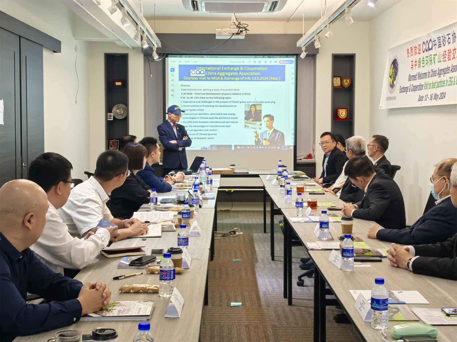为期八天的考察之行,考察团成员受邀参加了“马中绿色环保矿山经验交流会”。会上,来自马来西亚采石协会14个砂石生产会员参会,大宏立公司作为考察团成员代表在会上作了主题为“中国绿色矿山前景和机制砂市场运用”的经验分享。期间,还与马来西亚砂石协会、新加坡砂石公会、马六甲砂石分会、柔佛州砂石协会以及当地砂石骨料、混凝土沥青、建筑建材行业巨头进行了深入的探讨、交流。